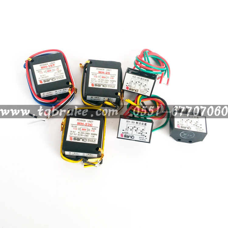 整流器是把交流電轉(zhuǎn)換成直流電的裝置給制動器提供電源,為機(jī)床設(shè)備、起重設(shè)備、輸送設(shè)備、升降設(shè)備的制動提供直流電源。 產(chǎn)品廣泛用于自動化工作電機(jī)、印刷、包裝、食品、紡織、制版、制罐、拉鏈、塑料、繞線、木工、電線、造紙機(jī)械等 從動作速度上有普通型和快速型兩種。從輸入、輸出電壓上有220V交流電壓輸入、99V直流電壓輸出和380V交流電壓輸入、170V直流電壓輸出兩種。我們的整流器是通用的,兩種電壓都可以使用。響應(yīng)時間:0.02秒。 1.采用塑料外殼封裝,環(huán)氧樹脂灌封,高絕緣,耐潮防震。 2.采用高精度超高反壓元器件,輸入輸出設(shè)計有超壓保護(hù)電路,提高產(chǎn)品的使用壽命。 3.可以安裝到電機(jī)接線盒里,采用耐高溫引線。 RY-99-4半波整流器電機(jī)制動器專用整流器整流裝置 整流器是將交流電轉(zhuǎn)換成直流電,給制動器提供電源??筛鶕?jù)客戶需求,提供多種整流器; ZL系列普通整流器主要用作YEJ/Y2EJ三相異步電動機(jī)與電磁制動器(SDZ/DZS/DLTZ/DZM/HDZ/TQEB系列)的接口。 外形美觀、體積小、接線方便;具有輸入、輸出保護(hù)電路。適用于電感器件的高頻次工作;密封性好,用環(huán)氧直接澆筑而成適合YEJ/Y2EJ電動機(jī)標(biāo)準(zhǔn)的工作環(huán)境,直接安裝在電機(jī)的接線盒內(nèi)。 輸入電壓(V AC) 輸出電壓(V DC) ZL-99-4 220/99 ZL-170-4 380/170 KZL系列快速整流器整流器主要用作YEJ/Y2EJ三相異步電動機(jī)與電磁失電制動器(SDZ/DZS/DLTZ/DZM/HDZ/TQEB系列)的接口。KZL系列快速制動器具有以下特點: 1、制動時間快,接線方便,無需在整流器直流側(cè)接入觸點,就可實現(xiàn)快速制動。 2、外形美觀、體積小、密封性好,適合(YEJ/Y2EJ)電動機(jī)標(biāo)準(zhǔn)的工作環(huán)境,可直接安裝在電機(jī)的接線盒內(nèi)。 3、具有輸入、輸出保護(hù)電路。適應(yīng)于電感器件的高頻次工作。 日本SANKI剎車整流器MH-23、MH-23C、MH-23TC、MT-2、MT-20、MH-20、MH-20H、MH-21、MH-21H、MH-211、MH-22、MH-20TC,MH-16T,MH-26,MT-10、MH-33、MH-34、MH-35、MH-12、MH-121、MH-10、MH-101、MH-17、MH-171、MH-201 SANKI剎車馬達(dá)整流器。剎車馬達(dá)由馬達(dá)和剎車兩部分組成,剎車部分又由機(jī)械剎車器和電控整流器兩個部件組成,機(jī)械剎車器和電控整流器共同影響剎車性能。機(jī)械剎車器的品質(zhì)決定了機(jī)械壽命,而選用不同性能的電控整流器對剎車快速性卻有更大的影響。SANKI整流器是高質(zhì)量的剎車整流器,依據(jù)中國電網(wǎng)狀況及國產(chǎn)電機(jī)慣性參數(shù)設(shè)計,經(jīng)測試剎車速度達(dá)到理論上最快的極限(空載僅0.02秒,即50Hz交流電的一個周期),2至5年的壽命。